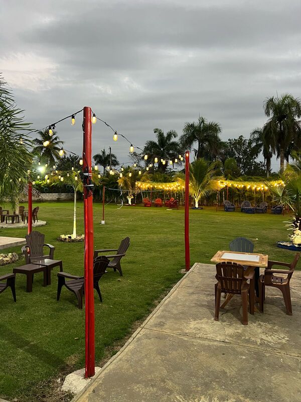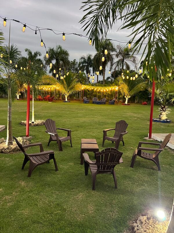 También jardín, kiosco, árboles frutales, aire acondicionado, habitacion para niños, habitacion para adultos y habitacion para huéspedes.