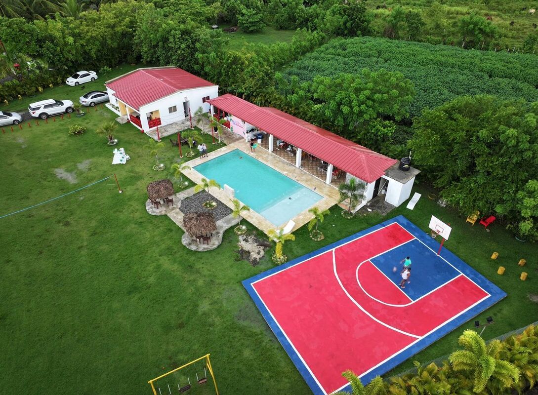 Tiene piscina, transformador, parque infantil para los niños, gazebo, garita, bar, billar, asadero, agua, luz e inversor.